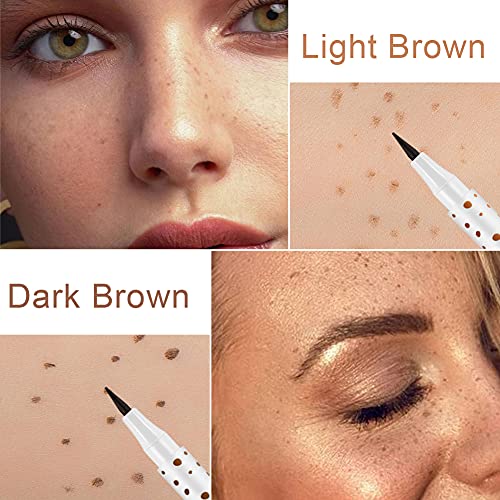 2 Pcs Freckle Makeup Pen Natural Freckle Face Makeup Pen Magic Freckle Color Waterproof Long Lasting Freckle Makeup Tool for Natural Makeup, Light Brown & Dark Brown
