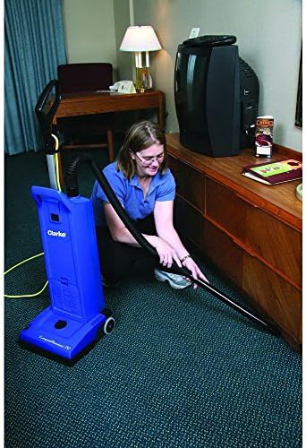 Clarke CarpetMaster 212 Upright Vacuum – The CarpetMaster 200 Series Dual Motor Upright 12″ vacuum is designed with the operator in mind. Clarke focused on ergonomics, durability, and reliability. The new CarpetMaster vacuums features a powerful motor, on-board crevice and upholstery tools, quiet operation, HEPA filtration, bag indicator light, and a light handle weight. The motor is also conveniently located at the base of the machine which results in a lighter handle weight. Features/Benefits:Standard HEPA filtrationQuick-draw detail wand with secure easy-access toolsBright, prominent bag light alerts the operator to change or check the bag for clogsQuick and simple bag replacementEasy access to air channel in base to clear clogsNo-tools access to brush for easy changeSimple brush height adjustment2-year service free cog style sealed beltNon-marking bumper50′ safety yellow cord