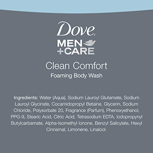 Introducing the first foaming body wash for men from the #1 Dermatologist Recommended men’s skin care brand, Dove Men+Care. This innovative foaming body wash instantly cleans and hydrates men’s skin with a rich foaming lather that cleanses and will rinse off with ease. Most men say this foaming body wash is better than the regular body wash they use. A good body wash for men should leave skin looking healthier and clean – Dove Men+Care Clean Comfort Foaming Body Wash does both. The foam cleanser neutralizes body odor and leaves you feeling fresh all day, while also penetrating up to 5 layers of skin to deeply replenish it. Experience our innovative instantly foaming lather for a new shower experience made specifically for men’s skin. With this foaming, creamy mens body wash, all it takes is three steps for hydrated skin. Pump for instant foam, work the rich lather onto skin and rinse off. Made with Nutrium Moisture technology, the foaming lather formula helps skin retain its natural moisture and kills dryness in one single dose. Get total skin comfort with this cleansing body wash in a clean, crisp scent. Start the day hydrated and feeling fresh with Dove Men+Care Foaming Body Wash, Clean Comfort.