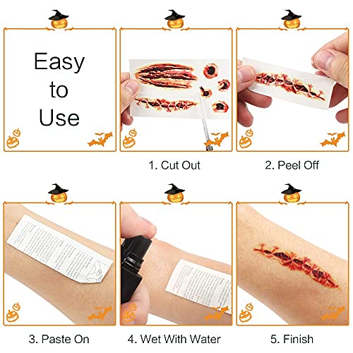 Environmental protection and non toxicity: Scar tattoo stickers is harmless to the skin, all adults and children can use it without any concern, So enjoy the party and enjoy the most cool Halloween makeup, Come on, be the main character of the party.