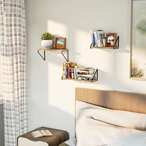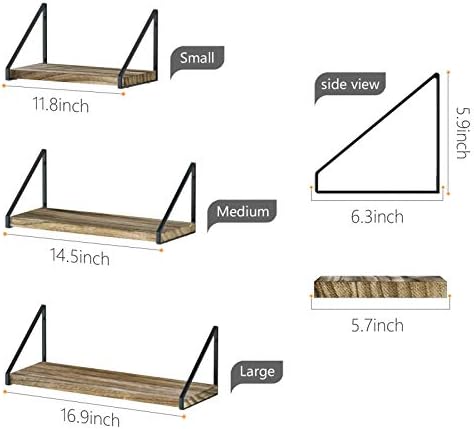 Rustic floating shelves – This rustic wood shelf comes with 3 wood boards and 6 metal brackets, finished with beautiful torched texture, an exquisite decoration in living room, bedroom, office, kitchen, pantry
