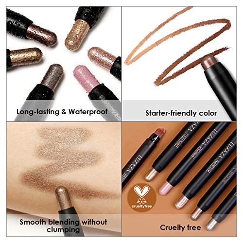 LUXAZA 6 PCS Neutral and Brown Metallic Eyeshadow Stick,Warm to Cool Cream Shimmer Eyeshadow Pencil Crayon,Pro Waterproof & Long Lasting Starter Eyeshadow Stick Sets