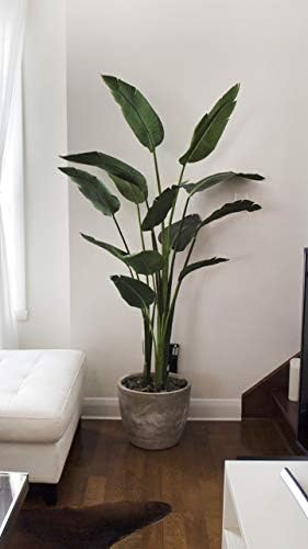 You are buying One of The Very Best Quality 5 foot Tall Artificial Silk Bird of Paradise Palm Tree Potted Plant. This artificial palm tree is made of silk. The artificial bird of paradise tree comes in a weighted, durable container that measures 6.5 inches tall, 6 inches across the top, and 6.5 inches across the bottom. The height is from the bottom of the pot to the top of the tree.