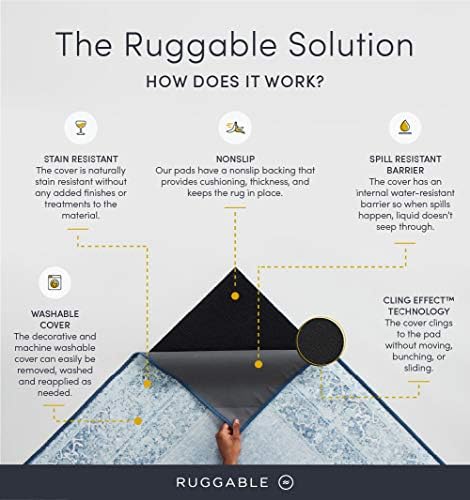 PATENTED 2-PIECE RUG SYSTEM: Ruggable’s innovative two-piece rug system keeps the Rug Cover and Rug Pad attached using patented Cling Effect technology; the pieces separate whenever you need to clean the Rug Cover