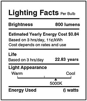 Equivalent to 60W incandescent bulb, cutting down your electricity bill by up to 90%.