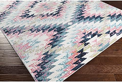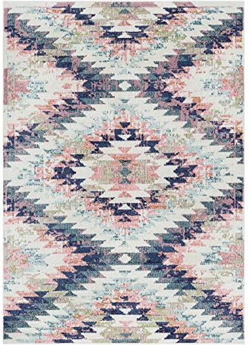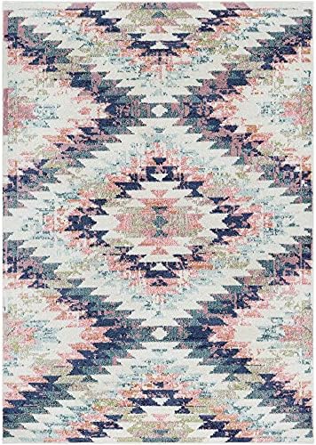 This versatile rug features a bright southwestern design for a rustic look at a comfortable price point.